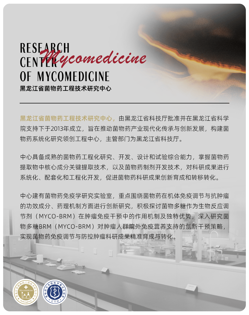 近日,黑龙江省菌物药工程技术研究中心(以下简称 “菌物药研究中心”)在菌物药“君臣佐使”营养干预原研体系上再度突破。中心现已成功构建了以“蛋白肽+菌物多糖”为核心的完整性营养免疫配伍系统方案,并将其精准转化成可针对肿瘤全周期不同阶段需求的定制化科学支持体系。据研究中心科研人员介绍,该体系方案是继菌物多糖 BRM(MYCO-BRM)在肿瘤院外营养免疫支持领域取得多项突破后,首次将传统“君臣佐使”配伍理论系统化应用于肿瘤全周期营养干预,是研究中心推动菌物药科研成果向实际健康服务场景转化的又一里程碑式举措。